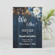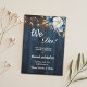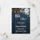 An elegant Save the Date Card with elegant calligraphy completed by wonderful blue wood, garden string lights and white blue floral with gold glitter. You can personalise this card with your pre-Wedding details.