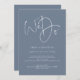 We Do Script Dusty Blue and White QR Code Wedding. Available digitally and printed. Add your QR code to your wedding website on the back makes this a convenient option for your guests to RSVP and see all the details without the need for separate RSVP and details cards. A simple yet elegant design on a background of Dusty Blue. Stylish set script We Do takes centre stage at the top. The rest of the text you can easily personalise. Text and background colours can be changed if you wish to better suit your wedding theme via the customise further option.