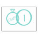 We Do! wedding design was created by Aubergine and Purple. This charming design of two rings was created with simple and elegant weddings in mind. The bold colour, Tiffany blue is used as the base colour of this design mixed with white. Note: Each table number card must be customised and individually added to the shopping cart.