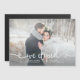 This elegant, rustic wedding photo elopement magnetic announcement features white script typography.