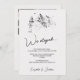 This card features a classy mountain and forest sketch design complemented by handwriting typography that reads "We eloped" on the front, and is customisable with one of your favourite wedding pictures on the back, as well as with a custom QR code to direct your guests to your wedding website to RSVP online