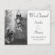 A postcard with an announcement that the couple have eloped to be wed. A vintage themed card where a girl jumps out of a window into the arms of her future husband ready to catch her at the front door of her father's house. An appropriate card for those couples where eloping is the only option available or where the couple have, for various reasons, chosen this approach over a more traditional wedding ceremony. Fully personalise the card to announce the Bride and Groom's name, and date of wedding (which may be in the recent past if the ceremony took place while the postcard was in the mail). Additional information such as expression of thanks, explanations etc, can be added on the back of the postcard.