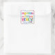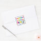 The design includes a cute coffee illustration paired with bold rainbow stripe borders, creating a vibrant and modern look that works beautifully on takeaway cups, packaging, bags, and small promotional gifts. A custom message area allows you to personalise each design for your audience or occasion.