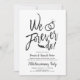 A fun and unique script lettered invitation tailored specifically to an Anniversary party or wedding vow renewal. It features the words "We Forever do" with wedding rings resting above it. Underneath this Is space for your unique party or event details.
