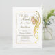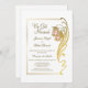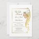 An elegant gold wedding reception invitation featuring an ornate gold frame with a gold embellishment with blush pink flowers as part of the frame. This is a perfect invitation for those who have chosen to marry in private or elope as a simpler alternative to a traditional wedding but still wish to share their joy with friends and family in a post-marriage celebration. Text is easily customised for you to add your own details as required.