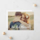 Announce your marriage with this bold brush script photo wedding announcement featuring "We Got Married!" in white lettering with a heart accent over your favourite photo. Names and wedding date are prominently displayed beneath. The back includes a second photo and a customisable letter sharing the story of your private ceremony. Replace both photos and edit all text to create a keepsake your loved ones will treasure.
