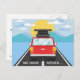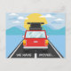 Cute change of address postcards for a family moving to a new house. Enter your personalised new home information on the back of this moving announcement postcard. This card has a cute drawing of a car with luggage piled on top driving off into the sunset and blue sky over the ocean with the headline text "We're Moving" which can be changed if desired. Share your new ocean home address.