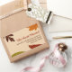 Orange, brown, dark red, and green fall leaves are on this moving announcement sticker. We Have Moved is above three lines of dark brown text. You can edit the text to show the correct name(s) and your new address.