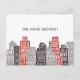 Cartoon style pattern with red and black retro buildings for a very exclusive new address announcement.