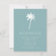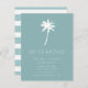 Tropical moving announcement featuring a palm tree set on a blue background with a fresh & modern stripe back.