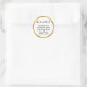 This moving announcement says "We Have Moved" in a cursive, scribble-style script. We Have Moved is on the top line. The other lines are not in script and are for your name(s) and new address. The sticker is white with black text. The faux gold border is not made of foil.