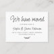 Minimalist Simple Elegant We've Moved” Whimsical Calligraphy New Home Moving Announcement insert enclosure card. Let your friends and family know your new address using these minimal card elegant pretty hand lettering font script typography (or calligraphy) „We Have Moved” text on front and the back side „Please keep in touch!” text in black and white. Easy to customise with your own details.