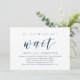 Modern Navy Blue Script themed, wedding elopement invitation card (We just couldn't wait). It is perfect for your wedding elopement reception / post wedding celebration party. Add your details in matching black font / lettering.