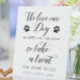'We love our dog so take a treat' Wedding Favors Pedestal Sign