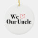 This cute Christmas ornament is the perfect keepsake gift for your Uncle! You can change the photo on the back as well as edit the names and year. The photo is set to fill the ornament area.