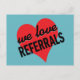 We love referrals with heart postcard
