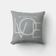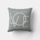 This We Love You Dad Photo Pillow is decorated with the word LOVE in white on a stylish grey background.