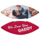 Personalised red, white & black fathers day football gift featuring a 3 family photos, the text "we love you daddy", and the kids names.