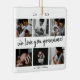 A simple yet bold photo Grandfmother ornament with 6 photos and we love you grandma editable text. Create a beautiful personalized gift to your Grandma (Mimi Grammy Nana) that she'll cherish forever. Special personalized grandchildren photo collage ornament to display your own special family photos and memories. Our design features a simple 6 photo collage grid with modern handwritten script editable we love you grandma. Customize with grandchildren's names.