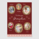 Add a special touch to Grandma's day with this personalised photo design card magnet. Greeting card has six image spaces in antique gold frames. There are also five text fields for names or other text. The centre text says "We love you Grandma" and is also editable. The background is a pretty red with accents of pink. There are also several hearts.