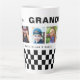 We love you Grandpa Chess Pattern 5 Grandchildren's Photos Keepsake Latte Mug. 5 custom photos of grandchildren and a black and white chess pattern. The text We love you Grandpa is in modern and trendy black script and bold font. Create your own personalised gift for a grandfather for Father`s Day, birthday or Christmas and add your names and photos.