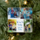 This cute, custom two-sided Christmas ornament features a modern layout of 4 family photos on a white background with blue typography reading We Love You Grandpa. This beautiful grandkids photo gift features your own photograph collage surrounding your personalised message and names. Add a 5th picture on the back of this double sided ornament.