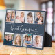 This 8-photo collage modern plaque features the heartfelt message "We love you, Great Grandma" with a cute heart, and the name of beloved grandchildren. A thoughtful gift for your great grandmother and a lasting keepsake she’ll always treasure. Use the editing tool to change the background colour, adjust the font size and placement.