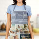 Perfect gift for Mother's Day, Birthday, or the Holidays: A modern, sweet apron customised with ten of your personal favourite photos as well as a message, names for the best mum ever. This is the dusty blue and white striped version.
