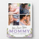 Sweet mothers photo plaque featuring 4 square family pictures, purple watercolor florals, the words "we love you mummy", and the kids names.
