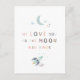 A "We Love You To The Moon And Back" postcard is a thoughtful and sentimental gift for friends who have babies and toddlers. The postcard, featuring the phrase "We Love You To The Moon And Back," is a way to express love and support to the new parents and their little ones. It can be given as a standalone gift, or paired with other items such as baby clothing or toys. The postcard decorated with cute and playful graphics, pastel colours, and whimsical imagery, making it an adorable and memorable keepsake for the family. The back of the postcard provides space for writing a personal message and well wishes to the parents and their little one. The postcard is a small but meaningful way to show your love and appreciation for your friends and their growing family.
