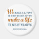 Full quote reads: "We make a living by what we get but we make a life by what we give." -Winston Churchill