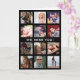 Personalised greeting card to send out to family & friends when you can't be with them. It features a black background that can be changed to any colour, 12 pictures for you to replace with your own, and a "we miss you" text template that can also be customised.