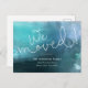 Affordable custom printed moving announcement postcards personalised with your family's new address and contact info. This chic minimalist design features an aqua watercolor background and modern hand-lettered script font. Use the design tools to customise the text, edit the fonts and colours or add your own photos to create a one of a kind new address card for your family or business.
