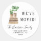 Simple boho chic new home and new address family return address sticker with watercolors of house plants and books and simple modern typography. Personalise "We've Moved," your name and your new address.