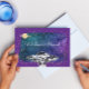 We’ve moved... and no, not yet to another planet!" This quirky postcard features an artistic galaxy and a UFO, perfect for those with a sense of humour and a love for space themes. Personalise it easily with your own details! Printed on both sides, it's a fun way to announce your new “landing spot ".