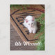 Pretty photo of a white kitten resting on a welcome mat, with message, "We Moved!", is featured on this postcard. Add your new address on back of this postcard using personalised text feature so everyone will know where to come to visit you!