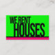 This neon green with hot pink trim business card is SURE to stand out. Perfect for any potential renter, featuring the quote "We Rent Houses" on the front.