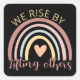'We Rise By Lifting Others' inspirational quote with a boho rainbow for any social activist to support social justice and minorities' rights.