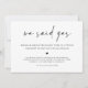 We said yes! A modern minimalist black and white card to announce your wedding or elopement to your friends and family.