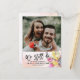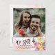 Modern Wedding Announcement Postponement Photo Postcard Templates - Elegant Lovely Colourful Watercolor Flowers and Handwritten Script on Watercolor Splash Background.