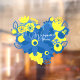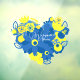 Ethnic flowers in the colours of the Ukrainian flag are collected in a composition.