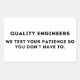 We test your patience, Funny Quality Engineer Rectangular Sticker