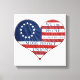 Colourful red, white and blue original 13 state Betsy Ross American flag in the shape of a heart, with the first line from the Preamble of the United States of America Constitution.