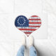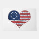 Colorful red, white and blue original 13 state Betsy Ross American flag in the shape of a heart, with the first line from the Preamble of the United States of America Constitution.