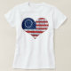 Colourful red, white and blue original 13 state Betsy Ross American flag in the shape of a heart, with the first line from the Preamble of the United States of America Constitution.