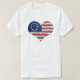 Colourful red, white and blue original 13 state Betsy Ross American flag in the shape of a heart, with the first line from the Preamble of the United States of America Constitution.