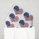 Colourful red, white and blue original 13 state Betsy Ross American flag in the shape of a heart, with the first line from the Preamble of the United States of America Constitution.
