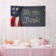 Words of the US Constitution "We the People" written on a chalkboard with a vintage American flag border