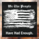 Make a statement with this "We The People" message on a window cling. This simple striking black and white design features a grunge art style image of the American flag with stylized text captioning "We The People Have Had Enough". Text can be edited.