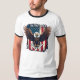 Show your American pride with this bold and patriotic design featuring a bald eagle flying against an American flag backdrop.
